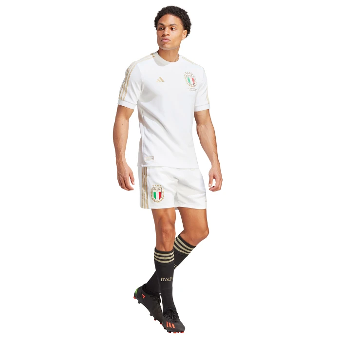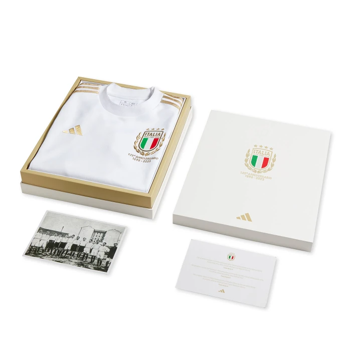 Toasting the 125th anniversary of the Italian Football Federation. Based on the kit the Italy national team wore during their first match on May 15th, 1910, this limited-edition adidas kit comes in a presentation box. Consisting of a white jersey and shorts with black socks, it's designed for comfort with super-soft fabrics. Premium details make it the perfect way to commemorate the birth of an international football powerhouse. a aMade with 100% recycled materials, this product represents just one of our solutions to help end plastic waste.